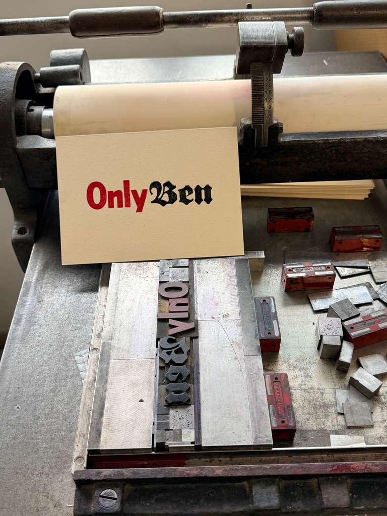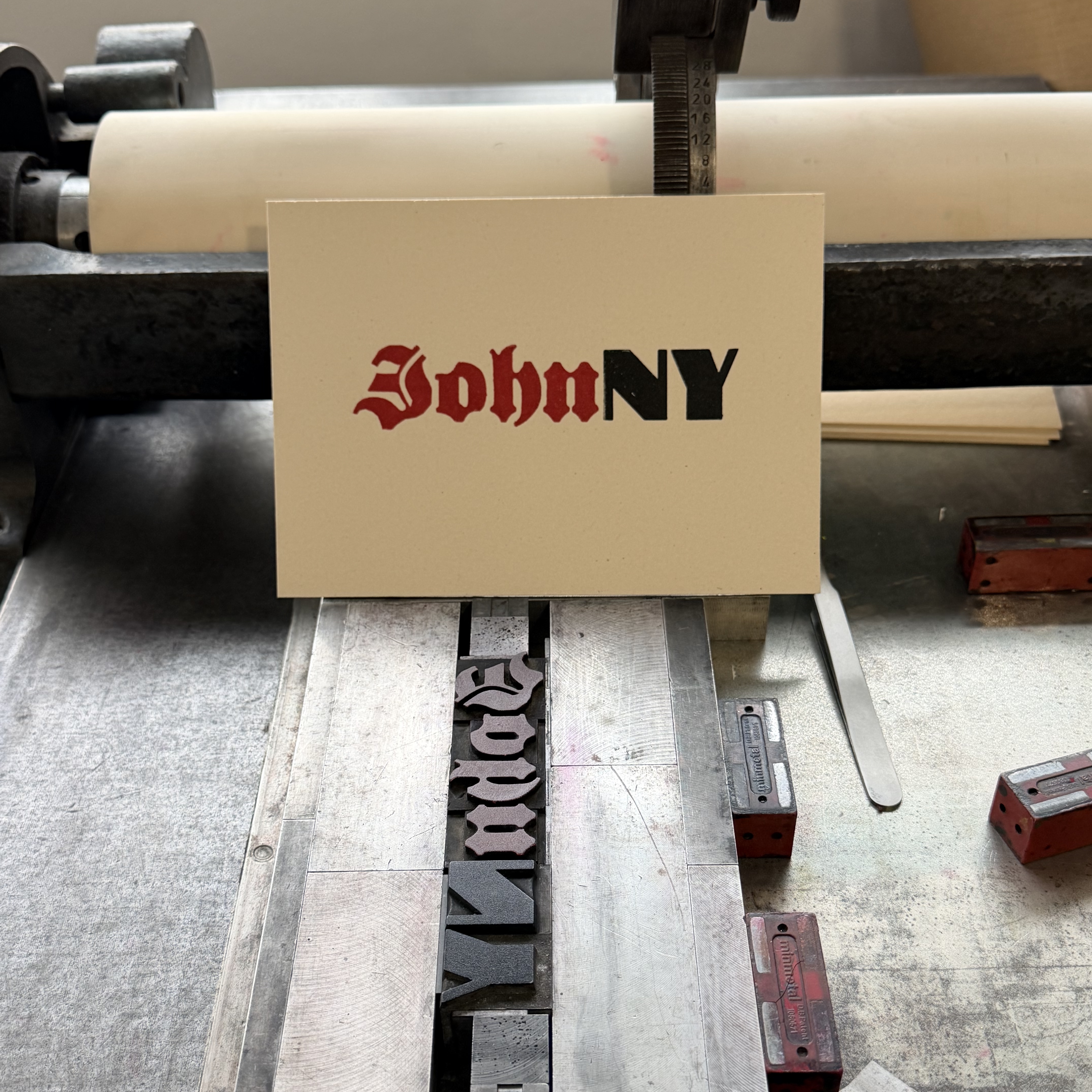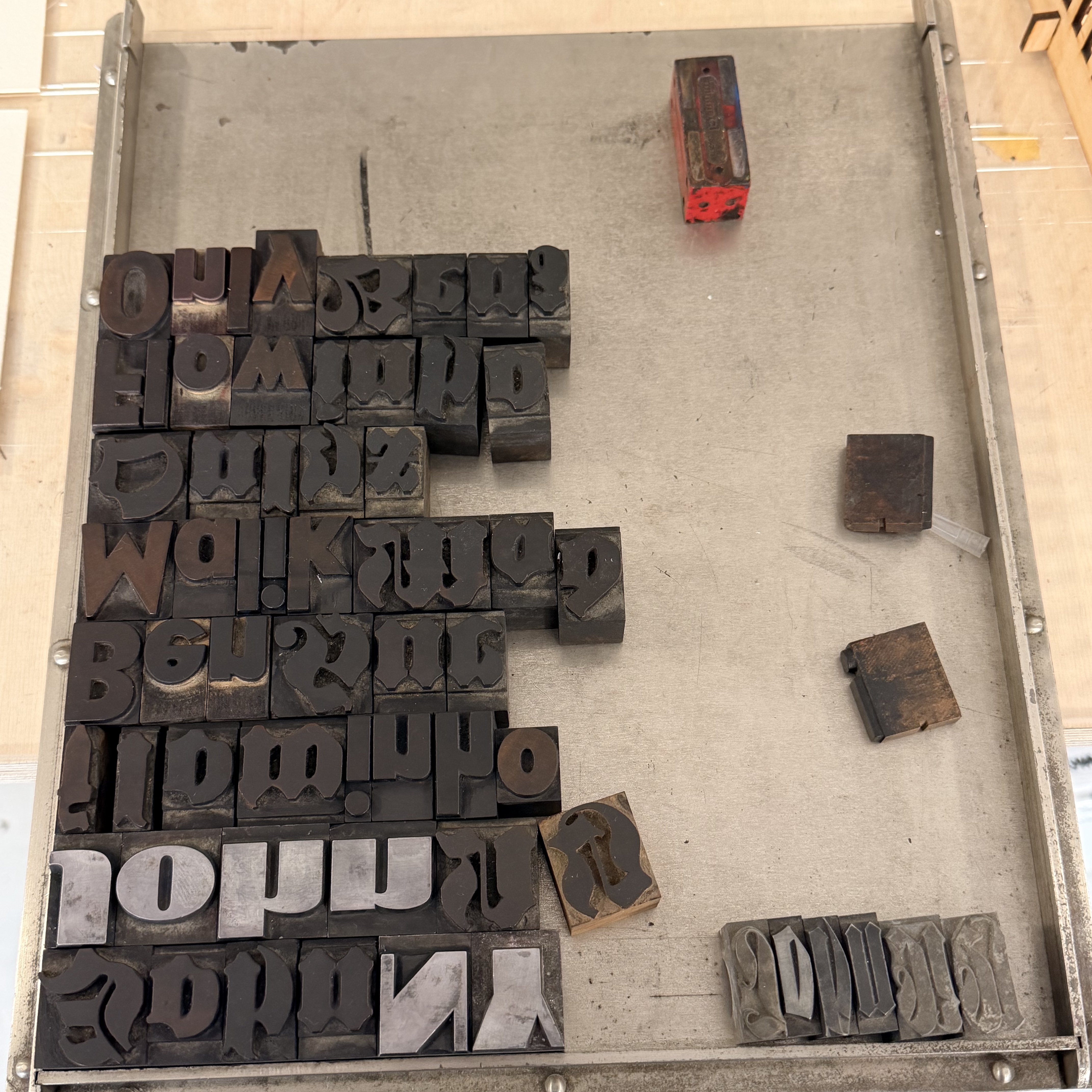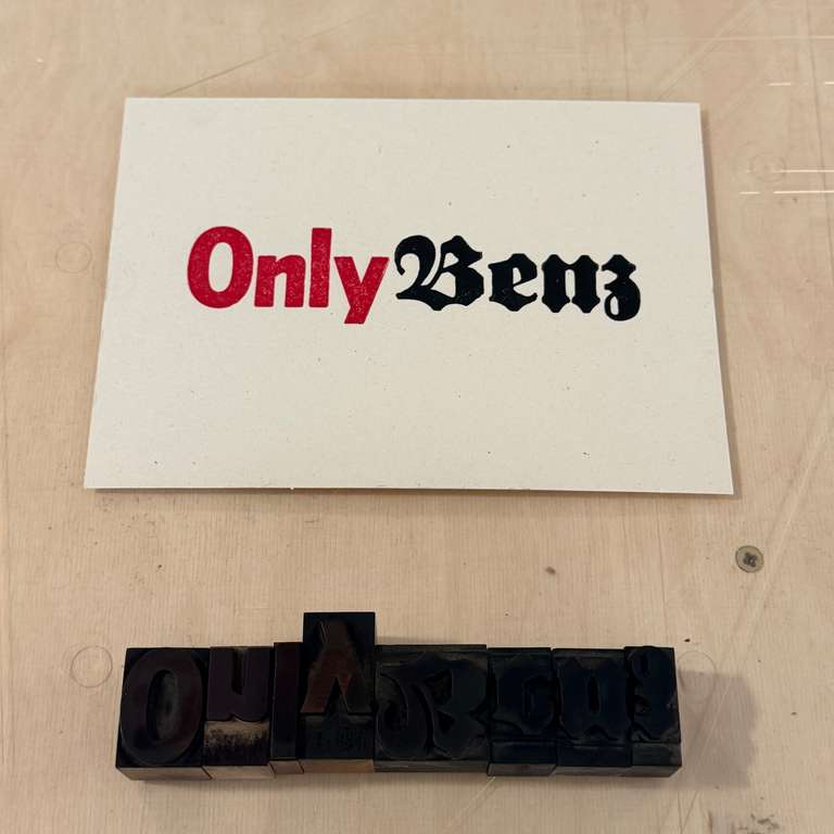 Verwendet wurden Grotesk Holzlettern der Futura ähnlich sowie eine Berthold Fraktur 6 Cicero das entspricht 72 Punkt. Da ich kein J zur Verfügung hatte habe ich bei Johnny auf die Koloss in 72 Punkt zurückgegriffen.